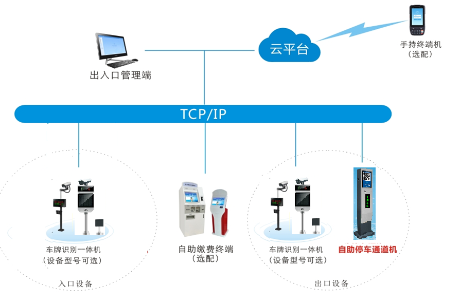 (2)配置自助停車(chē)通道機的崗亭電腦需要連接因特網(wǎng),無(wú)需云車(chē)場(chǎng)